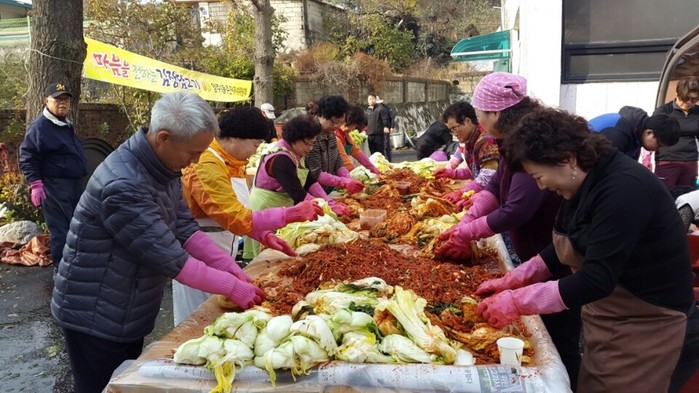 경기 양주시 양주1동 주민자치위원회는 최근 이웃사랑 실천의 일환으로 직접 심고 가꾼 배추를 수확해 '김장 담그기 행사'를 진행했다. 사진은 자치위원회 관계자들이 김장을 하는 모습.(사진제공=양주시청)