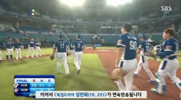 9회말 대표팀은 세번째 투수 이현승이 예이스 루이스를 투수 땅볼로 잡아낸 뒤 오마르 루나를 3루수 실책으로 출루시켰지만 조나단 갈베스를 3루 병살로 잡아내며 경기를 마무리했다.