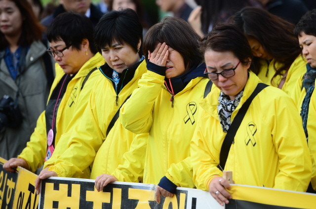 세월호 유가족들이 12일 오후 서울 서초구 대법원 대법정에서 세월호 이준석 선장 등 승무원들에 대한 상고심 선고공판 참관 후 기자회견을 하고 있다.