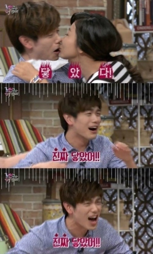 이후 라미란은 "재밌는 것을 보여주겠다"라며 휴지를 찢으며 에릭남에게 기습 키스를 시도했다.