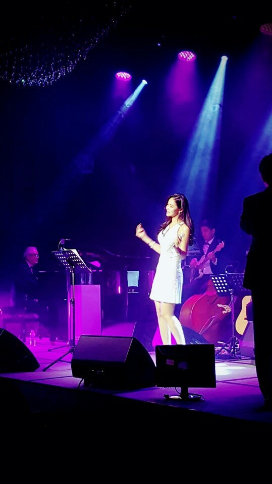 가수 조정민이 지난 17일 반야트리 호텔에서 영화배우 김지미의 사회로 진행된 콘서트에 블루벨스와 함께 무대를 꾸몄다.