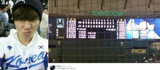 19일 케이윌은 자신의 트위터를 통해 "이것이야말로 인생 직관. It ain't over til it's over"이라는 글과 함께 자신의 사진을 올렸다. 공개된 사진 속 케이윌은 한국과 일본의 경기가 펼쳐진 도쿄돔 전광판과 자신의 모습을 담았다.