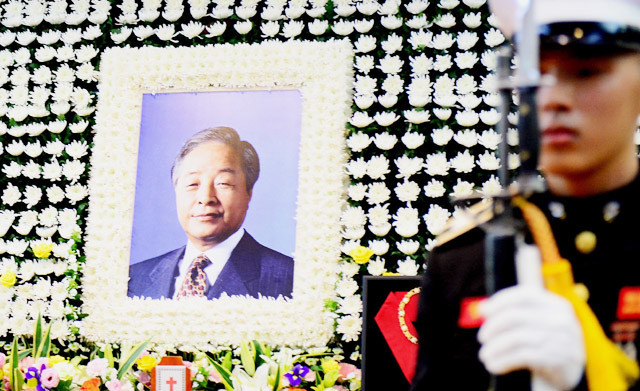 김영삼 전 대통령이 서거한 22일 서울 종로구 서울대병원 장례식장 빈소에 고인의 사진이 걸려 있다.