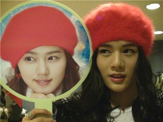김동준은 공개된 사진 속에서 한가인과 비슷한 옷차림을 하고 한가인의 사진을 들어보이고 있다. 한가인의 오똑한 코와,코옆에 난 점까지 완벽하게 따라하며 보는 이들의 놀라움을 자아내고있다.