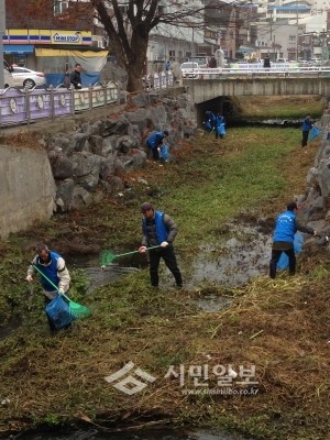 지난 20일 경기 이천시 관고동 바르게살기협의회에서는 중리천과 관고천에 쓰레기를 수거하는 '환경 정화활동'을 펼쳤다. 사진은 행사에 참석한 협의회 회원들이 각종 쓰레기를 수거하는 모습.(사진제공=이천시청)
