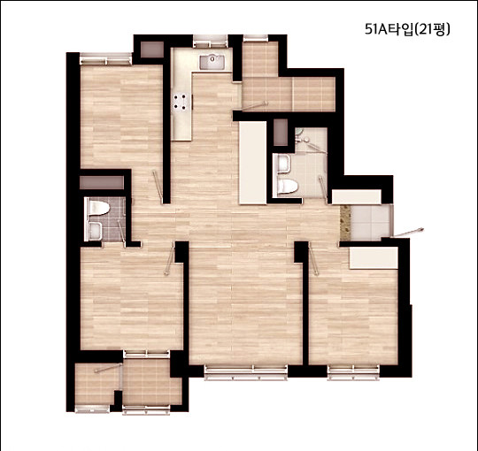 또한, 전용면적 69.42㎡(구21평)의 경우 2억 후반대로 구입이 가능하며, 소형 평형임에도 넓게 빠진 차별화된 구조와 공간설계로 방 3개와 화장실 2개, 그리고 넓은 거실과 주방까지 갖추고 있다.