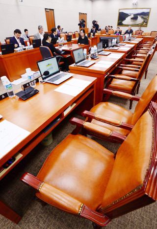 새정치민주연합 교육문화체육관광위원회 위원들이 24일 오전 서울 여의도 국회에서 국정교과서의 밀실 편찬 규탄 성명을 발표, 집필진과 편찬심의위원회 위원 공개 촉구 기자회견을 하고 있다. 왼쪽부터 박홍근, 유은혜, 김태년, 도종환, 유기홍, 설훈, 안민석, 배재정 의원. 이 기자회견에서 국회 예산결산특별위원회 간사이기도 한 안민석 의원은 “교육부 예산에 대해 징벌적 삭감을 단행하겠다”고 밝혔다.