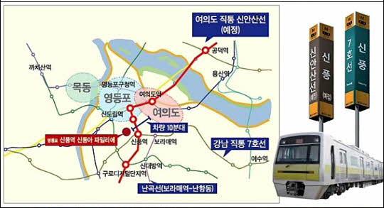 ‘신풍역 신동아 파밀리에’는 지하철 7호선 신풍역 도보 5분, 2호선 대림역 도보 12분 거리에 위치한 역세권 아파트로, 특히 2018년 여의도 직통노선인 신안산선이 단지 앞으로 개통 예정으로 이를 이용하면 여의도가 3정거장, 강남이 10분대로 도달이 가능하다.