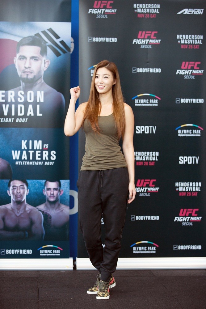 27일 서울 여의도크로스핏센티넬 IFC 오전 10시에 진행된 이 행사에 유승옥은 게스트 파이터 '줄리아나 페나'와 함께 등장해 포토행사와 격투기 기술시연을 진행했다.