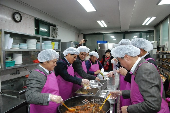 [수원=채종수 기자]경기도의회 건설교통위원회가 지난달 30일 오전 오산시 오산동 소재 사회복지법인 한국소자복지회를 방문, 한국소자복지회가 운영하는 노인 무료급식소에서 나눔과 사랑의 실천을 위해 배식 자원봉사활동을 실천했다.