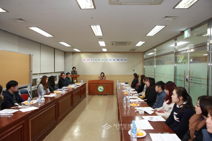 경기 수원시 권선구는 지난달 30일 구·동 사회복지담당자 40여명이 참석한 가운데 ‘2015년 제4차 권선가온누리 스터디 그룹’ 모임을 개최했다. 사진은 모임에 참석한 관계자들이 회의를 진행 중인 모습.(사진제공=권선구청)