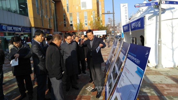 경기 안산시는 지난 1일 외국인주민센터 앞 광장에서 ‘범죄예방 환경개선사업’에 대한 준공식을 개최했다. 사진은 준공식에 참석한 관계자들이 환경개선사업에 대한 설명을 듣고 있는 모습.(사진제공=안산시청)