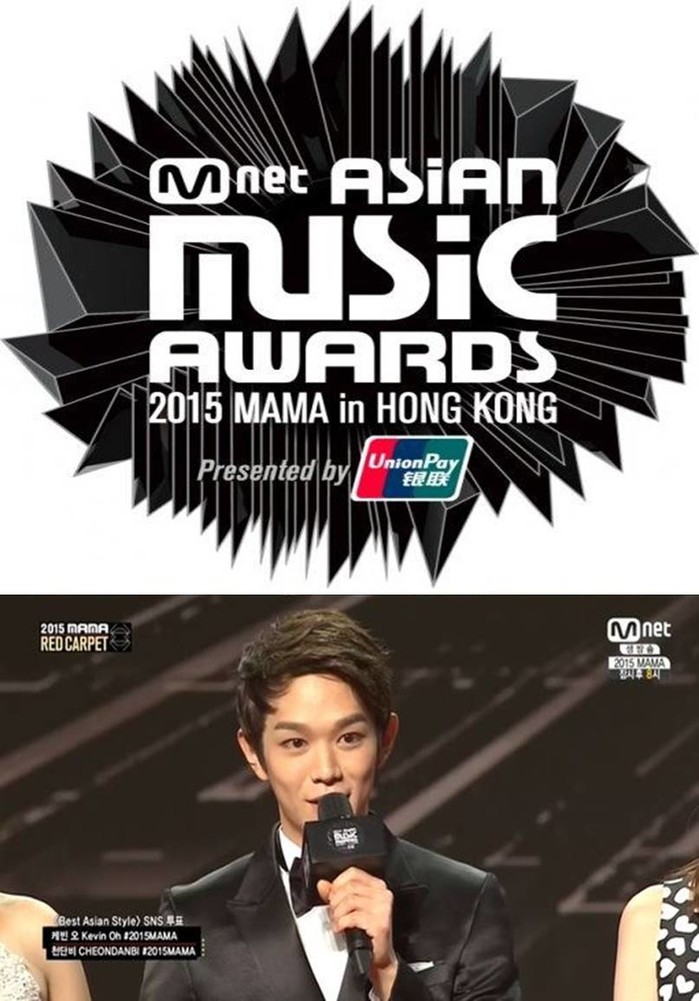 2일 오후 방송된 엠넷 '2015 엠넷 아시안 뮤직 어워즈(MAMA)'에 참석한 케빈오는 블랙 정장을 입고 등장했다.