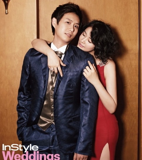 이 온라인 커뮤니티는 "달콤한 웨딩 사진"이라는 제목으로 허이재가 남편 등뒤에서 백허그를 하고 있는 포즈를 담고 있다.