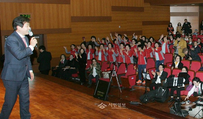 나상성 경기 광명시의회 의장이 지난 2일 광명시민회관 대공연장에서 열린 '제6회 광명실버예술제'에 참석해 노인들을 위한 노래를 부르고 있다.(사진제공=광명시의회)