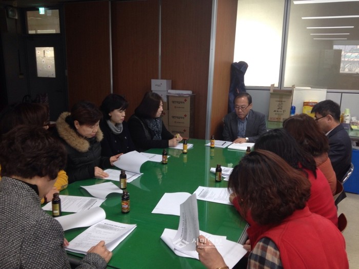 경기 수원시 권선구는 지난 2일 구 통계작업실에서 지역 물가조사를 위해 힘쓰는 물가모니터요원들과 함께 '2015년 4분기 물가모니터요원 간담회'를 진행했다. 사진은 간담회에 참석한 관계자들이 회의를 진행 중인 모습.(사진제공=권선구청)