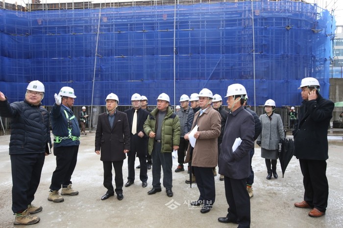 | ▲ 지난 3일 경기 화성시의회 도시건설위원회 위원들이 서부복합문화센터 건설 현장을 둘러보고 있다. | ||