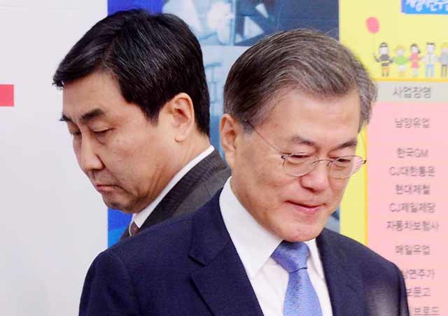 새정치민주연합 문재인 대표와 이종걸 원내대표가 4일 서울 여의도 국회에서 열린 최고위원회의에 참석하고 있다.