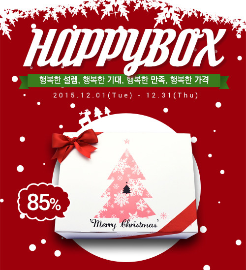 ‘12월 해피박스’는 구성품을 공개하지 않고 파격 할인으로 100명 한정제품으로 판매하여 더욱 설레임을 선사한다.
