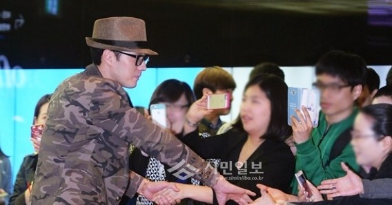 이 날 소지섭은 중절모에 밀리터리룩을 입고 찾아 온 팬들을 향해 일일이 악수를 하고 있다.