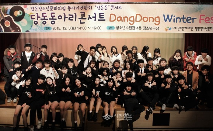 경기 군포문화재단은 지난 5일 청소년수련관 4층 청소년극장에서 '당동동아리콘서트 DangDong Winter Festival'을 진행했다. 사진은 행사에 참석한 학생들이 공연을 마치고 기념촬영을 하는 모습.(사진제공=군포문화재단)