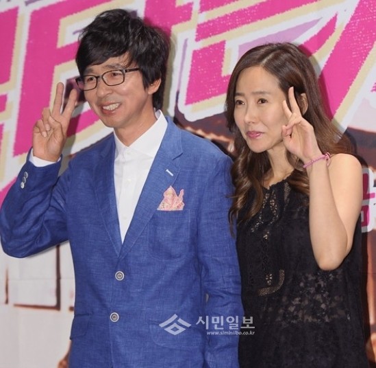 이 날 강수지는 블랙컬러의 레이스소재의 슬리브리스 의상을 입고 나와 김국진과 함께 V자 포즈를 취하고 있다.
