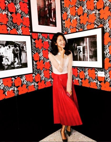 공개된 사진 속 그는 붉은색 롱 드레스에 시스루 흰색 상의를 입고 카메라를 향해 포즈를 취하고 있다. 특히 늘씬한 몸매와 물오른 미모가 눈길을 끈다.