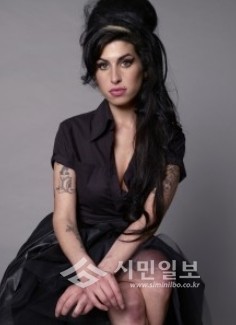 사진 속 에이미 와인하우스는 블랙컬러의 드레스를 입고 카메라를 응시하고 있다.