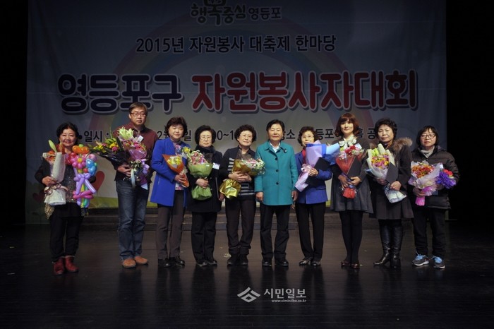 박정자 서울 영등포구의회 의장(오른쪽에서 다섯 번째)은 구의원과 함께 지난 9일 오후 3시 영등포아트홀에서 개최된 ‘2015 영등포구 자원봉사자 대회’에 참석해 봉사자분들의 귀중한 땀과 노력은 영등포에 자원봉사 문화가 뿌리내리는데 큰 역할을 해 왔다고 생각하며, 앞으로도 자원봉사자분들이 이웃 사랑 실천에 앞장 서 화합과 정이 넘치는 영등포를 만드는 데 일익을 담당해 달라고 당부했다.