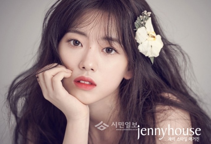 사진 속 신세히는 긴 머리에 꽃을 달고 몽환적인 눈빛으로 카메라를 응시하고 있다.