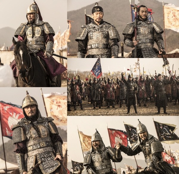 14일 '육룡이 나르샤' 제작진은 의미심장한 장군들, 군사들의 모습이 담긴 촬영 스틸을 공개해 이목을 집중시켰다. 폭수가 쏟아지는 가운데 이성계, 조민수(최종환 분), 이지란(박해수 분), 남은(진선규 분), 이신적(이지훈 분), 우학주(윤서현 분) 등은 수많은 병사들과 함께 있다.
