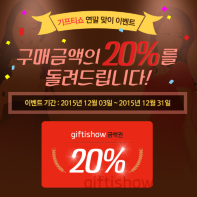 14일 관계자에 따르면 기프티쇼는 이달 말까지, 이벤트 상품 구매금액의 20%를 포인트로 되돌려주는 이벤트를 진행한다.