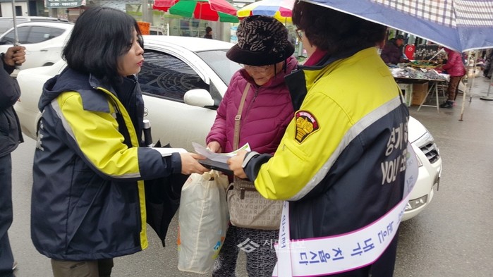 경기 여주시는 최근 '제237차 안전점검의 날'을 맞아 제일시장 중앙로 일대에서 시청 공무원과 유관기관 등이 참여한 가운데 '안전문화운동 캠페인'을 실시했다. 사진은 행사에 참석한 관계자들이 시민에게 캠페인을 진행 중인 모습.(사진제공=여주시청)