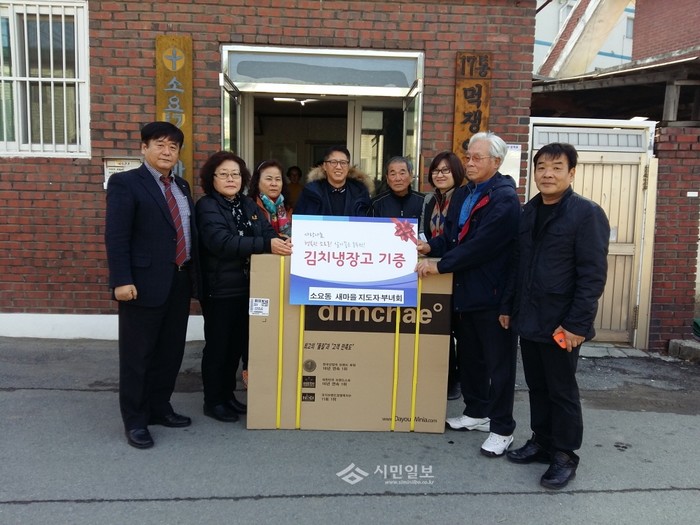 경기 동두천시 소요동 새마을지도자·부녀회는 지난 11일 소요동 17통경로당을 방문해 김치냉장고를 전달했다. 사진은 전달식에 참석한 관계자들이 기념촬영을 하는 모습.(사진제공=동두천시청)