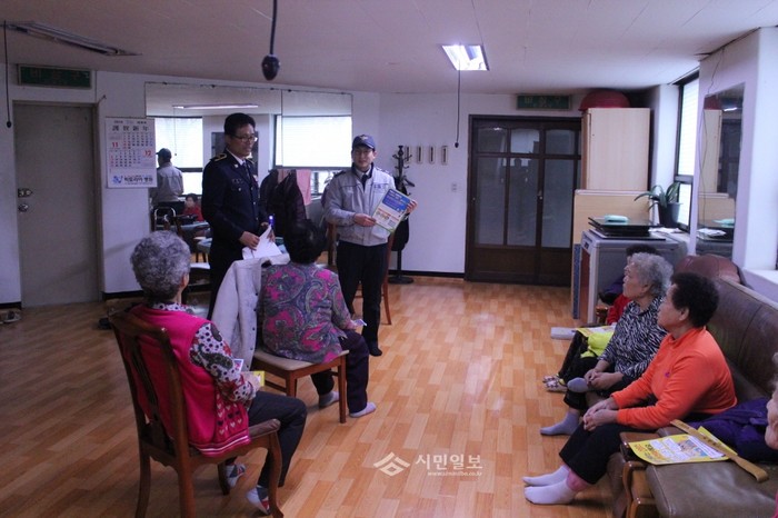 인천계양경찰서는 지난 14일 작전동 현대아파트 경로당을 방문해 지역 노인들을 대상으로 교통사고 예방을 위한 '찾아가는 교통안전교육'을 실시했다. 사진은 경찰서 관계자들이 노인들에게 교육을 진행하는 모습.(사진제공=인천계양경찰서)
