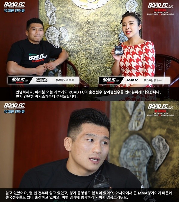 한편 장리펑과 홍영기의 대결이 펼치지는 '샤오미 로드FC 027 In China'는 오는 26일 중국 상하이 동방체육관에서 열리며 14억 인구가 시청하는 중국 최대 방송국인 CCTV가 경기 당일 오후 8시 30분(중국시간)부터 2시간 동안 생중계 방송한다.