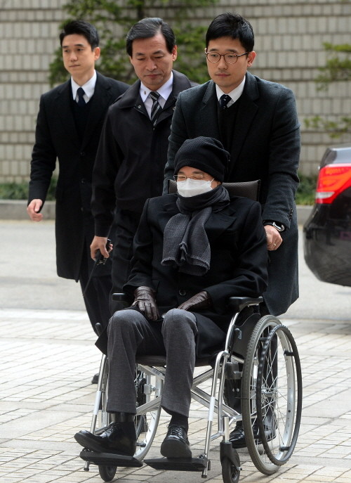 | ▲이재현 CJ그룹 회장이 항소심 선고를 받기 위해 15일 오후 서울 서초구 서울고등법원에 휠체어를 타고 들어서고 있다./뉴시스 | ||