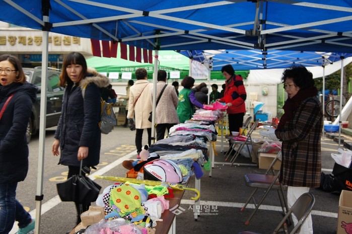 은평구 불광2동은 최근 동주민센터 앞마당에서 '제2회 희망나눔, 행복바자회'를 개최했다. 사진은 이번 바자회를 방문한 주민들이 아동의류, 물품 등을 구경하는 모습.(사진제공=은평구청)
