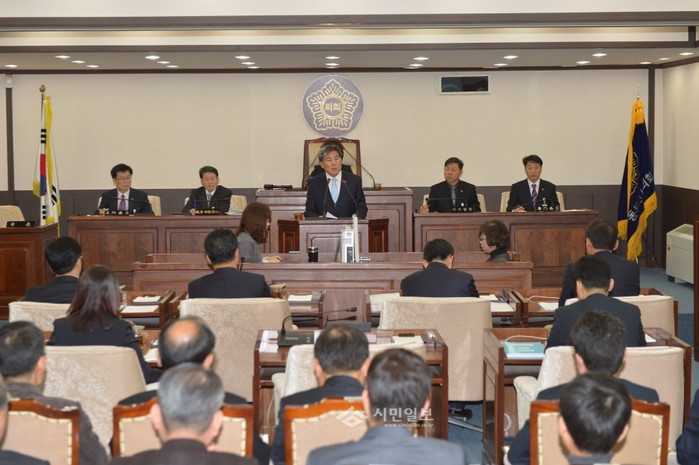 경기 동두천시의회는 지난 16일 본회의장에서 제253회 제2차 정례회 시정질문을 진행했다. 사진은 오세창 동두천시장이 의원들의 질의에 답변하는 모습.(사진제공=동두천시의회)