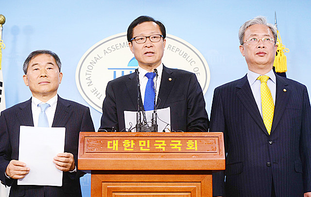 새정치민주연합 문병호, 유성엽, 황주홍 의원이 17일 서울 여의도 국회 정론관에서 탈당을 선언한 후 무소속 박주선 의원과 함께 국회를 나서고 있다.