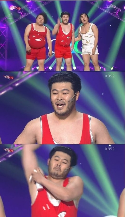 김기방은 20일 방송된 '개그콘서트'의 '니글니글' 코너에 게스트로 참여했다. 처음 말쑥한 복장으로 나왔던 김기방은 이내 '니글니글' 특유의 빨강 타이즈로 변신했다.