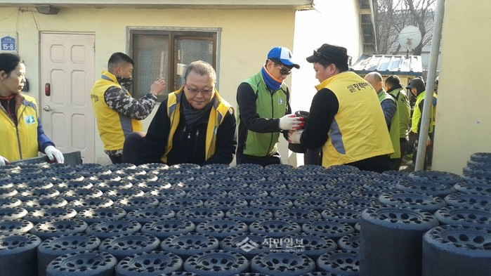 경기 평택시 신평동 방위협의회는 지난 19일 평택애향회 회원들과 함께 지역내 어려운 이웃 8가구에 연탄 3000장을 배달했다. 사진은 행사에 참석한 관계자들이 연탄을 나르는 모습.(사진제공=평택시청)