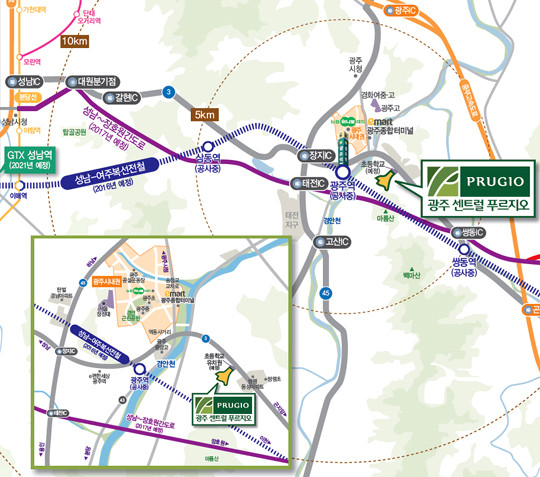 경기도 광주는 내년 2016년 개통 예정인 신분당선 복선전철 광주역과 판교 테크노밸리 입주 등의 호재로 서울 강남, 송파, 분당, 용인, 판교 지역 수요자들로부터 신흥 주거단지로 주목을 받고 있다.