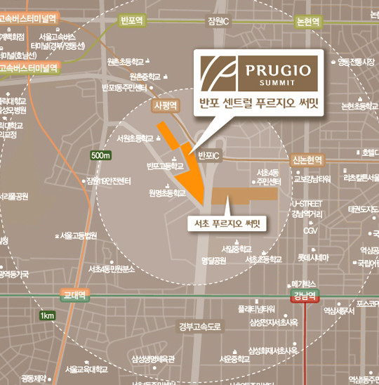 교통환경도 편리하다. ‘반포 센트럴푸르지오 써밋’은 강남 중심권에 위치해 있어 테헤란로, 강남대로 등 업무지구 접근성이 뛰어나 출퇴근이 편리하다. 또한, 지하철 9호선 사평역을 걸어서 이용할 수 있으며, 지하철 2,3호선 환승역인 교대역과 2호선,신분당선 환승역인 강남역도 이용할 수 있다. 또, 올림픽대로, 남부순환로를 이용해 시내권으로 진입이 쉽고, 경부고속도로 반포IC를 통해 지방으로의 이동도 편리하다.