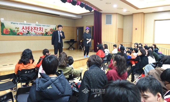 노원구가 최근 중계2·3동공공복합청사 5층 강당에서 ‘2015 산타잔치’를 개최한 가운데 김성환 노원구청장이 (사)함께가는노원장애인부모회 주관으로 열린 산타잔치에 참석해 인사말을 하고 있다.(사진제공=노원구청)