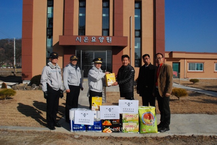 경기 연천경찰서는 29일 오전 11시30분 사회복지시설인 ‘시온의 집’을 방문해 위문품을 전달했다. 사진은 차경택 서장(왼쪽에서 세 번째)을 비롯한 관계자들이 기념촬영을 하는 모습.(사진제공=연천경찰서)