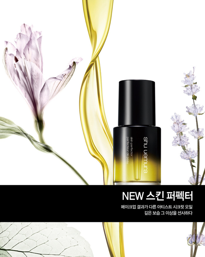 슈에무라에서 2016년 첫 신제품으로 선보이는 ‘스킨 퍼펙터’는 오일의 명가 슈에무라의 50년 노하우가 집약된 페이스 오일 제품. 베이스 메이크업 전 단계에서 사용하는 것으로 메이크업의 밀착력을 높이고 보습은 극대화해 매끈하고 은은한 글로우 피부를 연출해준다.