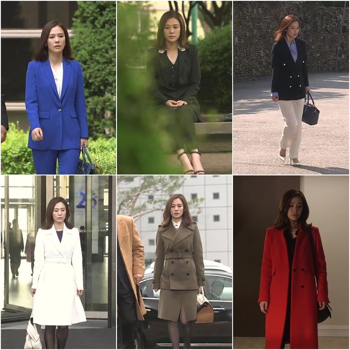 이러한 김현주의 오피스룩은 캐릭터에 생동감을 더할 뿐만 아니라 실제 회사원들에게 좋은 가이드가 되어 준다. 드라마 속 김현주는 바지정장으로 활동성을 살리고, 블랙 정장으로 시크한 매력을 드러냈다.