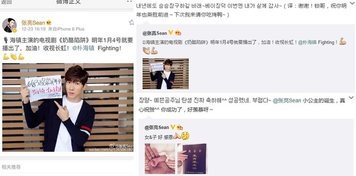특히 장량은 박해진의 추천으로 ‘닥터 이방인’에 깜짝 출연해 뜨거운 반응을 불러 일으켰고 지난해 12월엔 중국 드라마 ‘남인방-친구’에서 함께 출연해 연기 호흡을 맞춰 큰 화제가 된 바 있다.