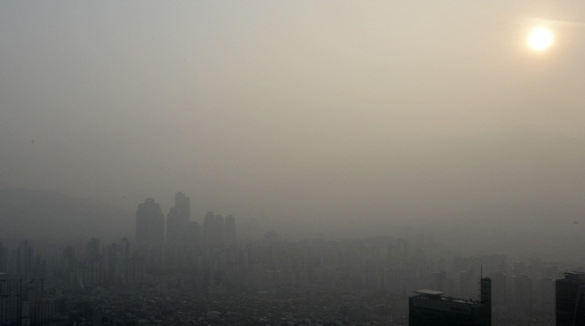 전국 곳곳에 안개주의보와 미세먼지 농도가 나쁨 수준을 보인 3일 오후 서울 강남구 한국종합무역센터에서 바라본 도심이 희뿌옇게 보이고 있다.